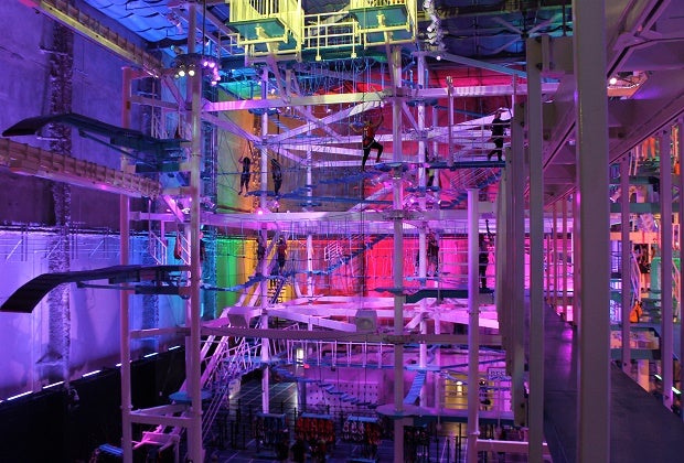 Families unleash their inner Tarzan while taking on ropes, nets, and ladders. Image courtesy of It Adventure Indoor Ropes Course.