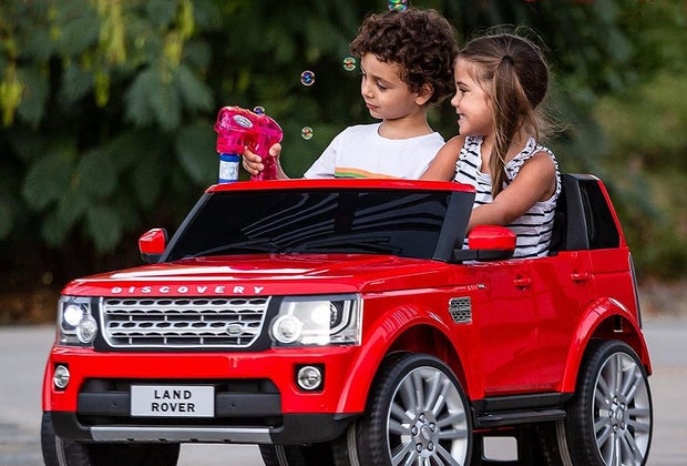 Kids can channel their inner Barbie as they roll around town in this pink SUV with two-wheel suspension, treaded tires, and a remote control. Startup sounds, a horn, LED highlights, and the ability to play music by plugging in a device make the car feel realistic. There's even room for Ken—er, a friend! If pink is not your kiddo's jam, the Land Rover also comes in black, red, and white.