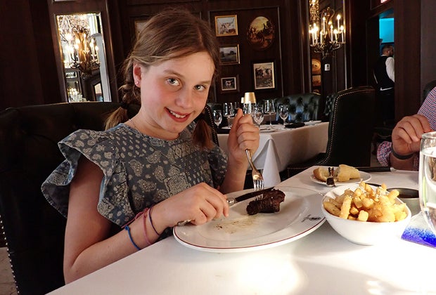 If you're looking for a fancier dinner out with the fam, I recommend this classic Texas steakhouse inside the Hotel Paso Del Norte. Not only is the restaurant itself stunning with high ceilings and crystal chandeliers, but the food is really tasty. And while there is no formal kids menu, the staff was more than willing to split a Caesar salad and steak for my daughters.