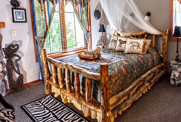 Stay in a uniquely themed guest room, like the Safari Room, at The Lodge at Grant's Trail. Photo courtesy of the lodge