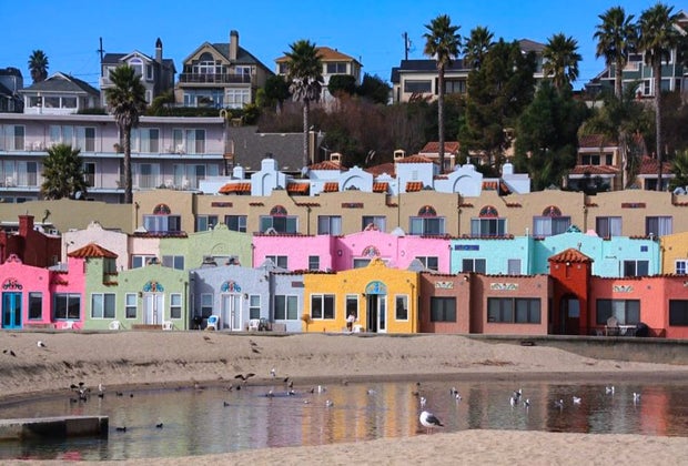The colorful Capitola Venetian Hotel is located right on the sand. Photo courtesy of californiabeaches.com