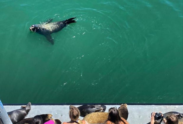 Spot seals in the wild at the Santa Cruz Municipal Wharf. Photo courtesy of the Wharf's Facebook page
