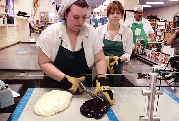 Watch candy being made, and try some warm samples, at Lofty Pursuits. Photo by Stephanie Ogozalek