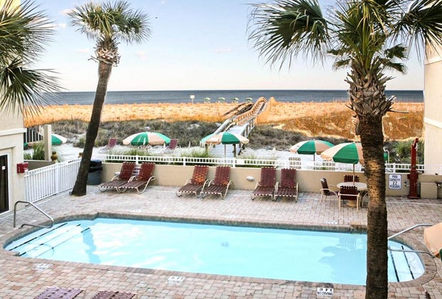 The only beachfront hotel on Tybee Island, this hotel features an outdoor heated pool, a game room, and free beach chairs and umbrellas. The hotel is located on the quieter north end of the island, a short beach walk away from the picturesque Tybee lighthouse. Parking and breakfast are complimentary.