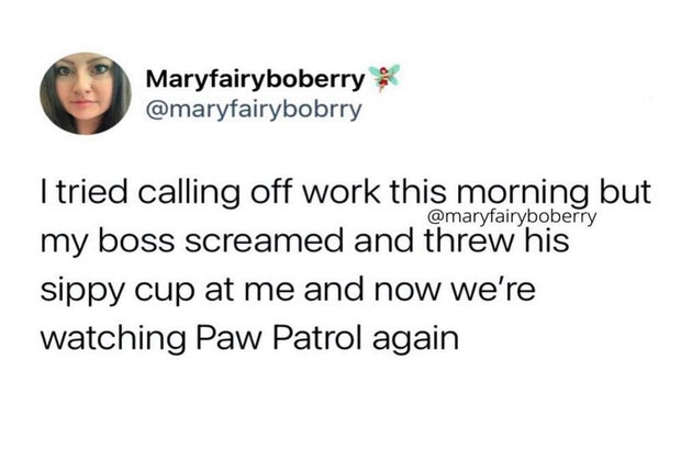 2. This parenting gig comes with many benefits, but a day off isn't one of them.