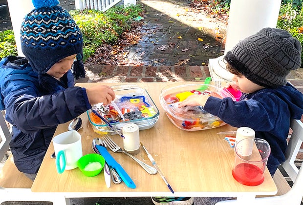 Freeze small toys in an ice cube tray or dish of water overnight. Ask your child to rescue the toys by melting the ice with different methods—sprinkling salt, using a dropper to add warm water, and chipping away at the ice with a spoon or even a toothbrush.