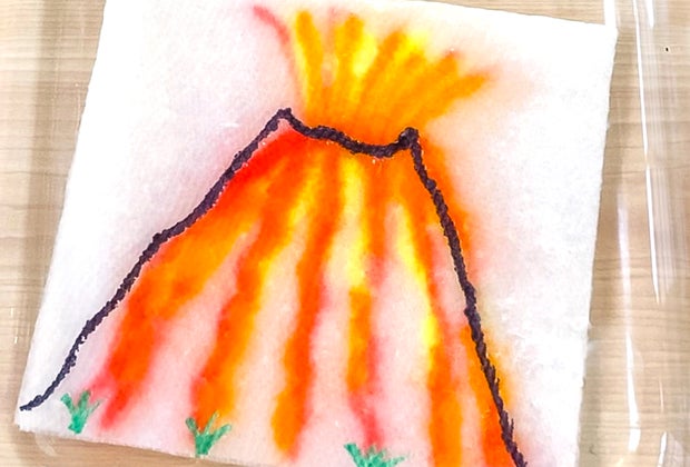 Get crafty with salt-absorption art. Cover swirls of glue with salt and drop some watercolor on the design. The color will magically travel through the salt as it absorbs the liquid.