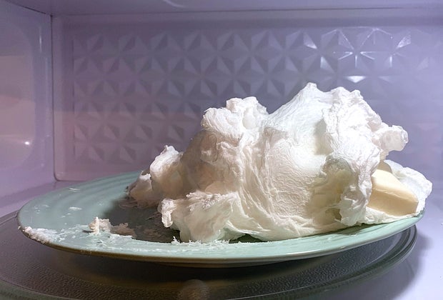 Pop a bar of Ivory soap in the microwave and marvel as it mushrooms into a bizarre ball of powdery puff that you can play with once it cools. Our kitchen smelled like Ivory for a few hours after trying this one and I wasn’t mad about it.