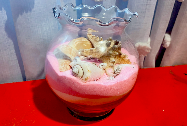 Instead of using a jar to create a terrarium with an air plant and moss, put sand and seashells inside. This also makes a beautiful centerpiece for tables. Get as intricate as you like, adding miniature figures, sea rocks, or tiny umbrellas. Use sand collected from the beach or get creative with colored craft sand.