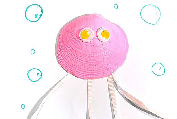 Create a cute jellyfish out of a seashell, paint, googly eyes, and some ribbon.