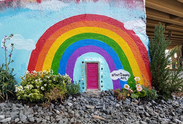 Door #2 can be found at Old Fourth Ward Skate Park. The rainbow was added after the door's original construction and inspired the Tiny Doors ATL logo!
