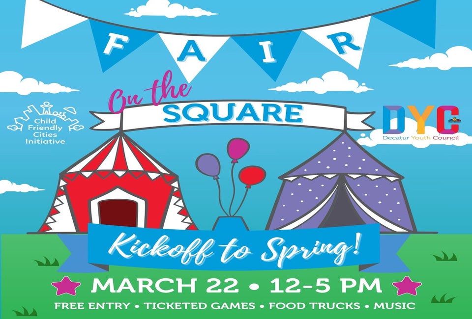 The Decatur Youth Council and friends host Fair on the Square as a kickoff to spring. The event includes local bands, carnival games, a mechanical bull, a dunk tank and food trucks.