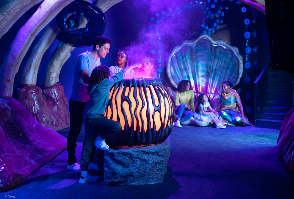 Families experience and immersive journey at CAMP with Disney's The Little Mermaid. Audiences climb, slide, sing, dance, and play during this show which includes live music, puppetry, and magic.
