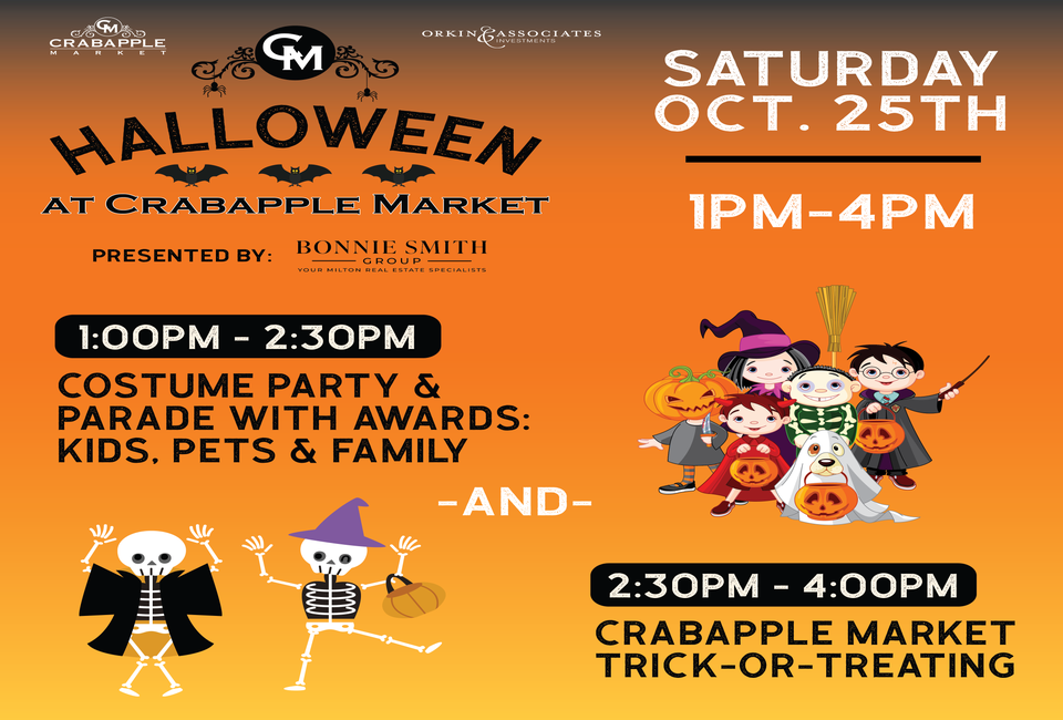 **Trick or Treat at Crabapple Market Businesses 2:30 - 4PM