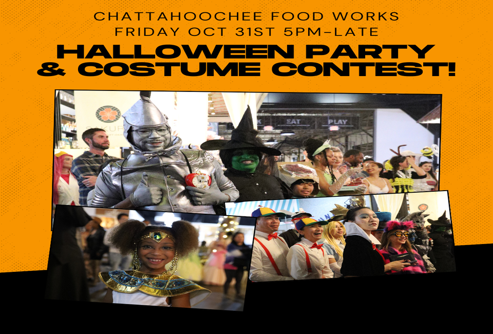 Visit Chattahoochee Food Works on Halloween day and sign up for their annual Halloween Party costume contest! DJ Steve will be performing at 5pm, and the costume contest will start at 9pm.