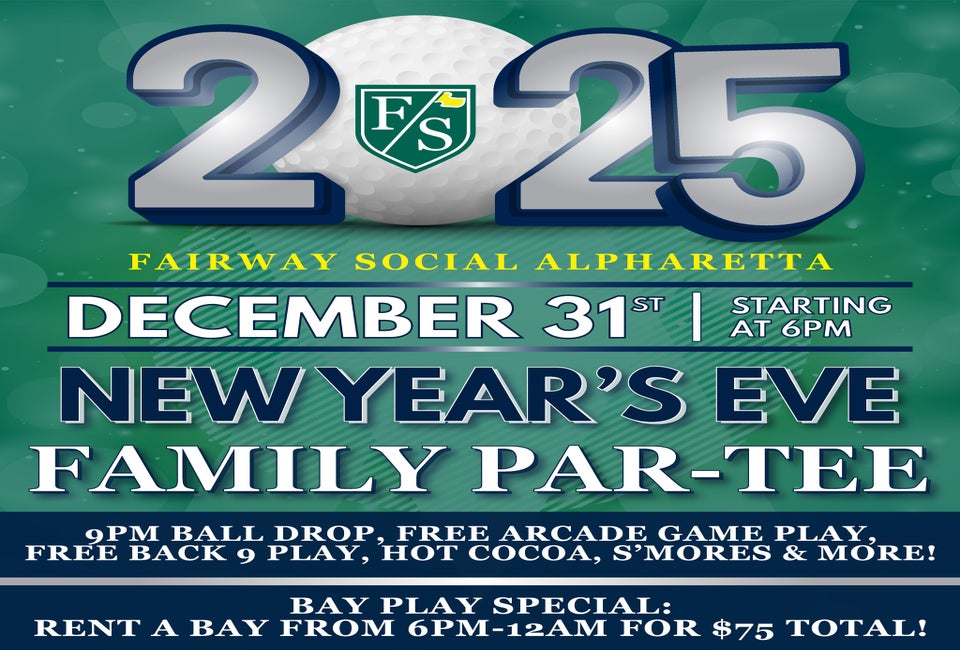 Celebrate New Year’s Eve at Fairway Social Alpharetta with the family and free arcade games, back-9 play, hot cocoa & s’mores and a 9 PM countdown with a mini ball drop!