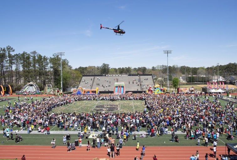 This HUGE Easter Egg hunt involves a helicopter dropping thousands of eggs on Sprayberry High School's football field. The event also features activities such as face painting, and a kids zone with inflatable slides and bounce houses and opportunities for photos with the Easter Bunny for free between 11am and 3 pm.