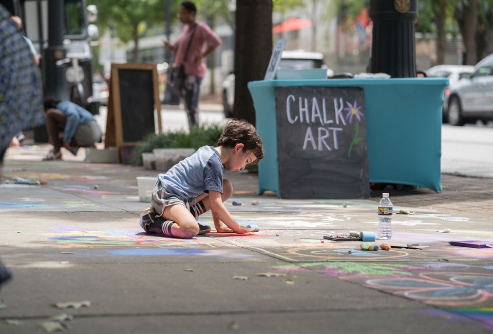 On the second Sunday of each month, MODA throws a free party on the plaza. On May 12th the theme is Midtown Blooms Chalk the Block Party!