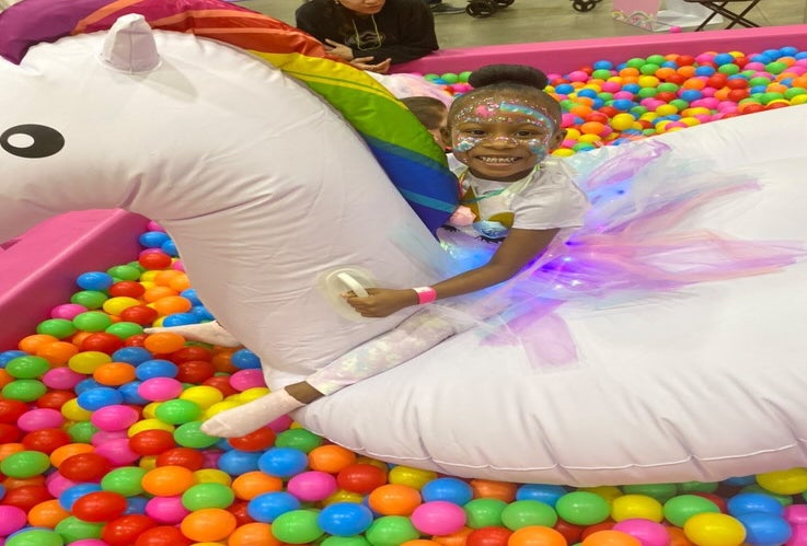 Unicorn-themed arts and crafts, music, dancing, hula hoops, a unicorn reading section, and a unicorn gift shop for everyone to enjoy.
