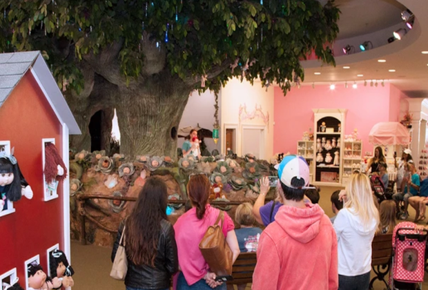 After displaying the history of the doll, the corridor leads (unsurprisingly) to a vast and plentiful gift shop, where visitors are welcome and encouraged to shop for a new Cabbage Patch Doll, among other toys. Keeping with tradition, there are also several "adoption" rooms where new parents can sign adoption papers for a new Cabbage Patch Doll.