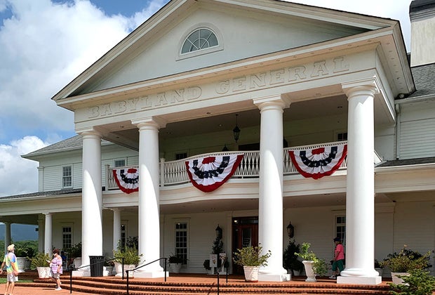 The grounds of Babyland General Hospital are vast (about 650 acres) and well manicured, the building and surroundings resembling a palatial plantation style home, adorned with American Flag ribbons. The building was originally a medical facility, built in 1919 and converted in the '80s to become the famous BabyLand General Hospital.