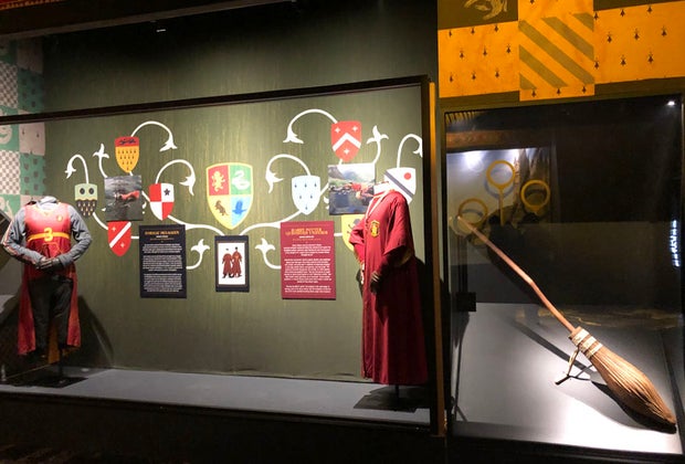Harry Potter: The Exhibition is bursting with movie memorabilia, like these Quidditch props.