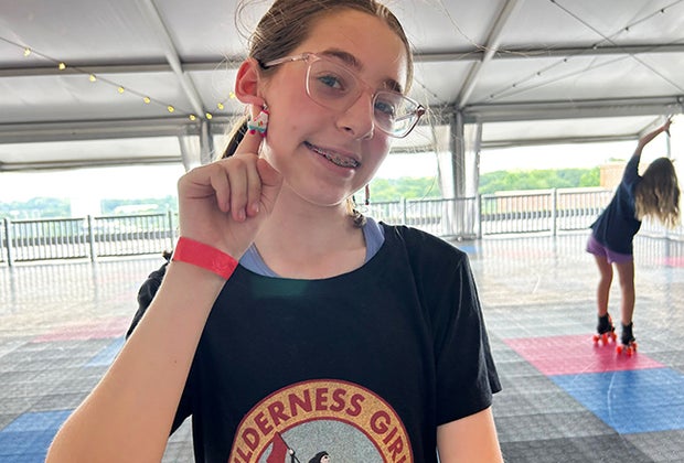 My girls did struggle a bit when they first put on their skates at SK8 the Roof, since they're used to a carpeted (and thus slower) on-ramp to the rink. Some kids (mine) held on to the walls for stability, while other roller skaters did tricks zooming through the inner circle. You can ask Roof staff for roller skate trainers/aids if needed. Complimentary water is available near the skate rental, so make sure to hydrate because it gets HOT out there!