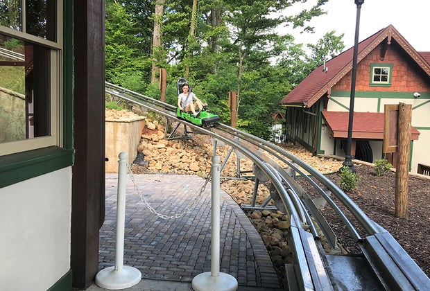 Each cart can hold up to two people, but the driver must be age 16 or older. After buckling in, the coaster slowly ascends up the side of the beautiful mountain. Enjoy the view while you can because once you get to the top, the speedy descent winds around curves, hills, and a couple of loops. Although the total ride is only a few minutes long (with half spent going uphill), you can purchase a second trip for half price.