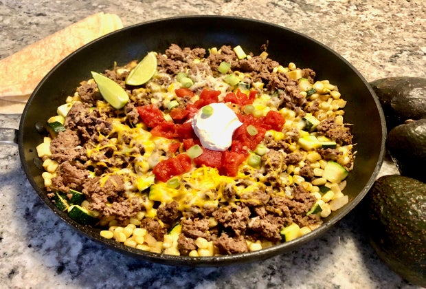 One-Pot Tacos with Ground Beef, Cheese, and Zucchini