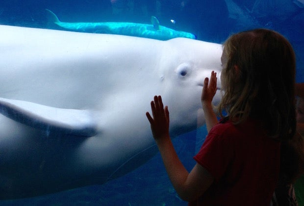 Kids will get a kick out of seeing beluga whales, shark feeding, and sea lion shows at the Mystic Aquarium. Photo courtesy of the aquarium