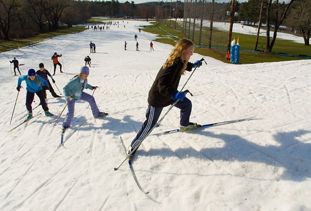 Families can learn to cross country ski or showshoe together at Winter Trails Day. Photo courtesy of Weston Ski Track/Paddle Boston