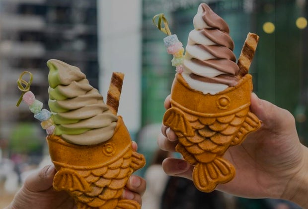 The fish waffle cone at Taiyaki NYC, near The Rocks at Harbor Way. Photo courtesy of Taiyaki NYC