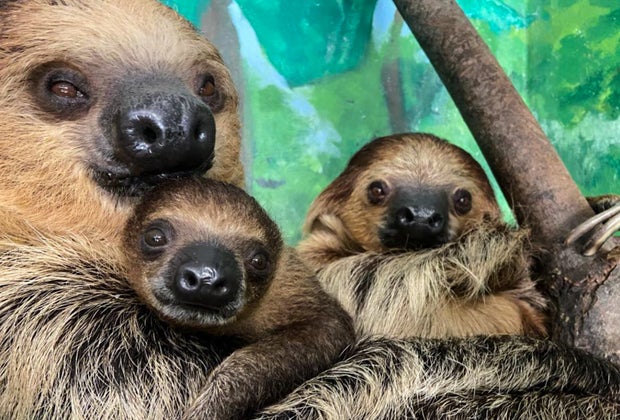 Sloth parents Lunestra and Nero now have a little one, Taco, to share with the public. Photo courtesy of the Stone Zoo