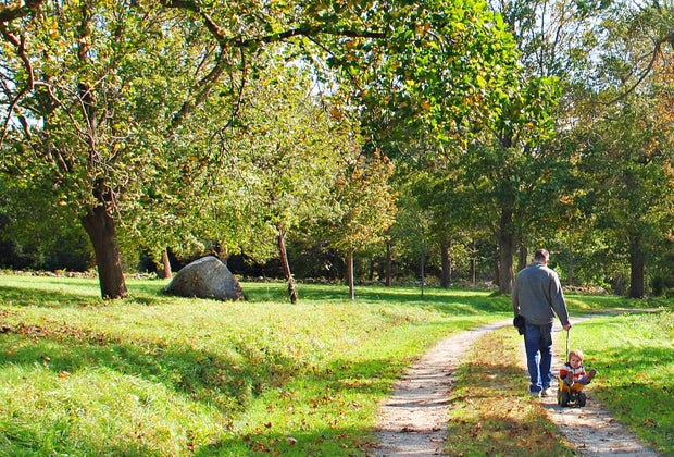 Many of the best places for hiking with kids around Boston are accessible. Select Trustees properties have reopened for hiking and exploring. Fruitlands Museum in Harvard, Naumkeag in Stockbridge, and World's End in Hingham are all opening in a controlled fashion, with visitors purchasing timed parking passes online in advance to limit overcrowding. Many Mass Audubon trails and parking spots are open to the public now, too, including the Boston Nature Center in Mattapan and Waseeka in Hopkinton.