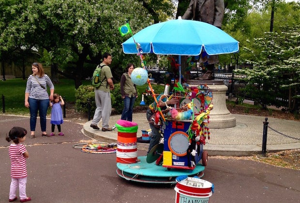 The Public Garden also attracts some memorable street performers, so much so that even Bruce Springsteen stopped by in 2011 to strum one of the performer's Spanish guitars. A must for kids, however, is to catch the guy who has an entire band of strange instruments strapped to his back, which he operates in an entertaining rhythm of stomps, plucks, and jerks. Children can even join in the fun by playing some loose instruments.