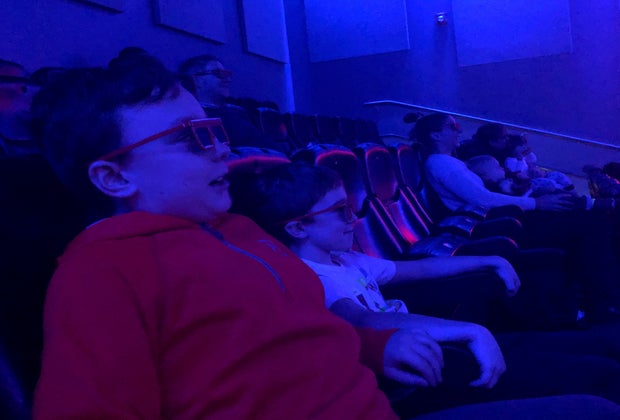 We arrived at the museum about a half-hour before our timed Polar Express tickets, so my 10-year-old and 6-year-old got their energy out in the movement-oriented Science in the Park permanent exhibit, conveniently located right next to the 4-D Theater in the museum's Blue Wing. A few minutes before showtime, the boys and I lined up with other eager "passengers" in front of the theater, and collected our 3-D glasses from a bin at the door.