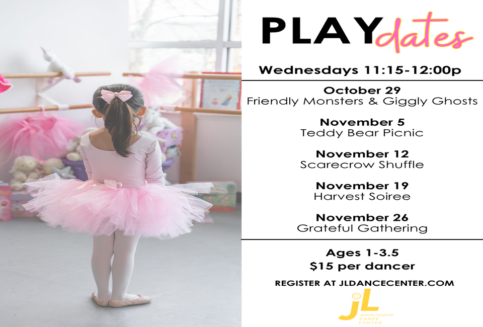 PLAYdates at JLDC are joyful, interactive dance events for the youngest movers. These themed sessions offer a playful introduction to dance and a memorable social experience that celebrates movement, friendship, and community.