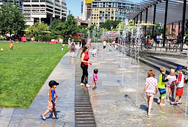 With that thinking in mind, we've rounded up some gentler, preschooler-friendly local fountains and splash pads. Be sure to check out these outdoor pools with fun slide and spray features for more ways to cool off this summer, or if a climate-controlled environment is more your family's speed, consider a visit to a preschooler-friendly indoor water park. There are plenty of ways to get wet around Boston—without tears!