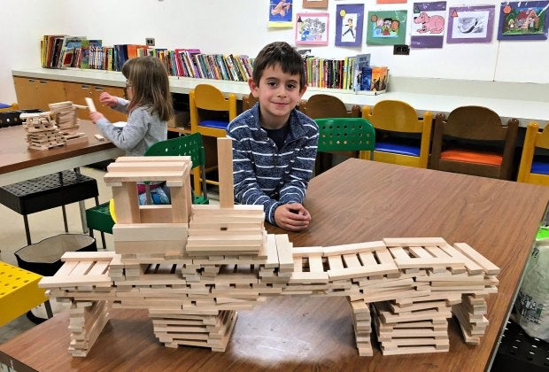 In Framingham's newly renovated play space, there are plenty of building toys for budding engineers. Photo courtesy of Framingham Public Library