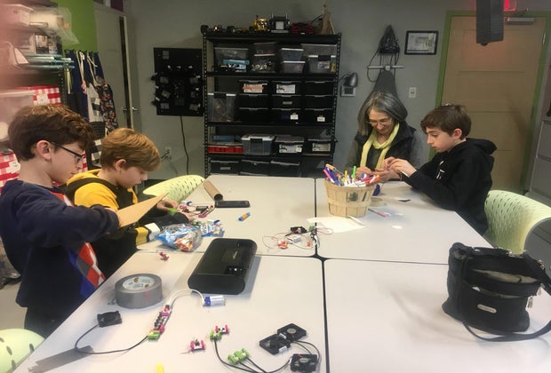 Kids and grown-ups often collaborate in the makerspace. Photo courtesy of Hatch Makerspace/Watertown Free Public Library (Facebook)