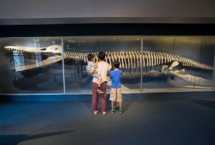 The 42-foot Kronosaurus at Harvard Museum of Natural History is the only mounted full skeleton of this apex predator from the time of the dinosaurs anywhere in the world. Photo by Tony Rinaldo.