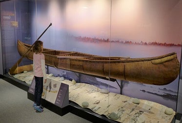 Penobscot canoe at the Peabody Museum of Archaeology & Ethnology (Image used with permission of Harvard Museums of Science & Culture).