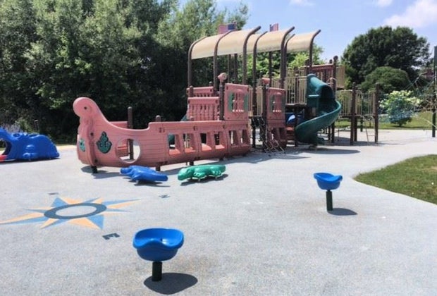 What sort of play structure befits a spot with gorgeous ocean views? A majestic pirate ship, of course! Across the street from a public beach, this playspace in Great Neck Park underwent a renovation in 2009 in honor of young mom Naoko O'Flynn, who passed away from cancer, and is now anchored by a giant pirate ship with slides, tiered decks, and soft rubber matting for safety. There's also a spider web and tetherball pole to interest 'tweens while little brothers and sisters quarrel over who gets to be Blackbeard on board.