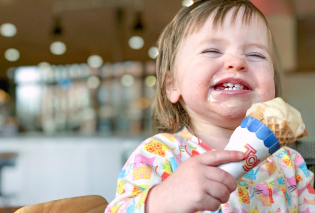 Claire Rose enjoying her first ice cream cone at New City Microcreamery. Photo by Lindsay Tierney