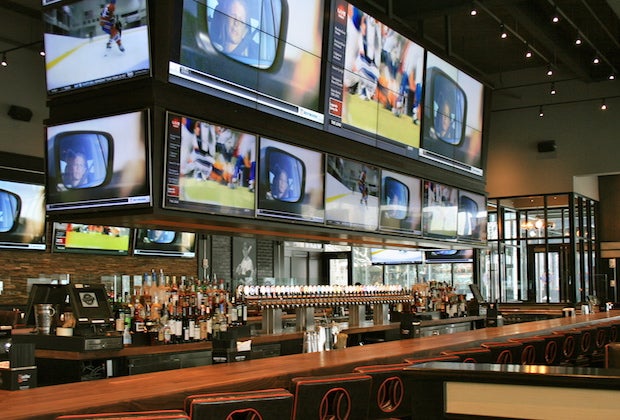 These cavernous sports-themed restaurants have more HDTVs than wall space, and are very family-oriented. Bad news is, they can get crowded, and aren't taking reservations on Sunday. The good news: If you find tables are scarce, there are Plan Bs in every location: Papagayo in Assembly Row, Yard House in Fenway, and Salvatore's at the seaport all have TVs and solid food.