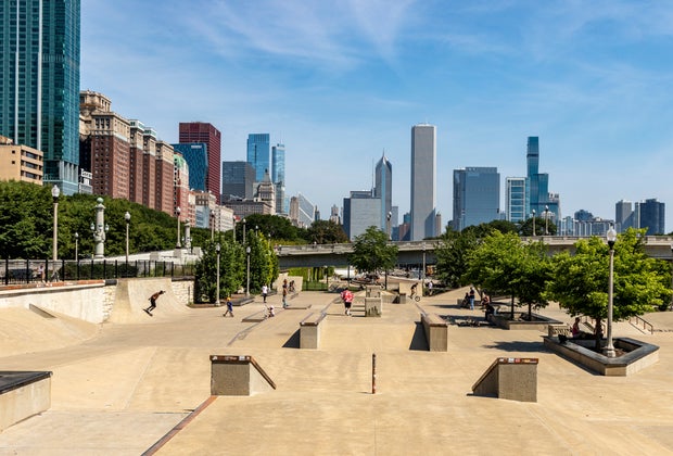 Grant Park Skate Park in Chicago. Photo by Paul R. Burley, Wikimedia. CC BY-SA 4.0