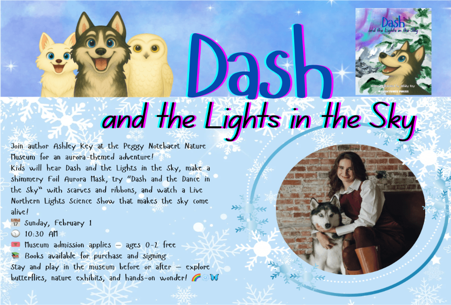 Families are invited to a special northern-lights-themed STEM storytime, craft, movement activity, and live science demonstration with children’s author Ashley Key at the Peggy Notebaert Nature Museum of the Chicago Academy of Sciences in Chicago. This hands-on program blends science education, sensory learning, creativity, and movement-based exploration and is perfect for preschoolers, early elementary students, homeschool families, and young science enthusiasts.