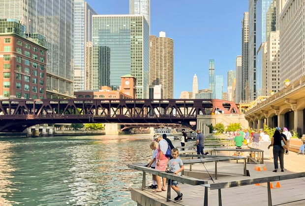 You can fish in the Chicago Riverwalk. Photo by Nancy Kalchbrenner