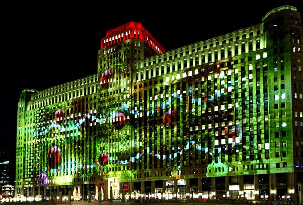 Step out on the clear glass ledge to see the lights of the city from the 103rd floor of this Chicago iconic structure. Reservations are required, and the SkyDeck is open on Christmas Day from 8:30 a.m. to 10 p.m., giving viewers plenty of time to take in the scene after dark.