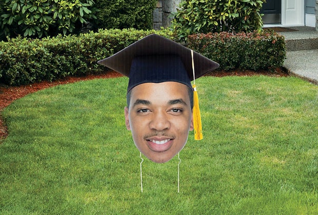 Various online retailers are offering unique graduation products. Get a lawn sign with your grad's oversized face or order a "honk and wave" sign to let the whole neighborhood know there's a recent graduate in the house.